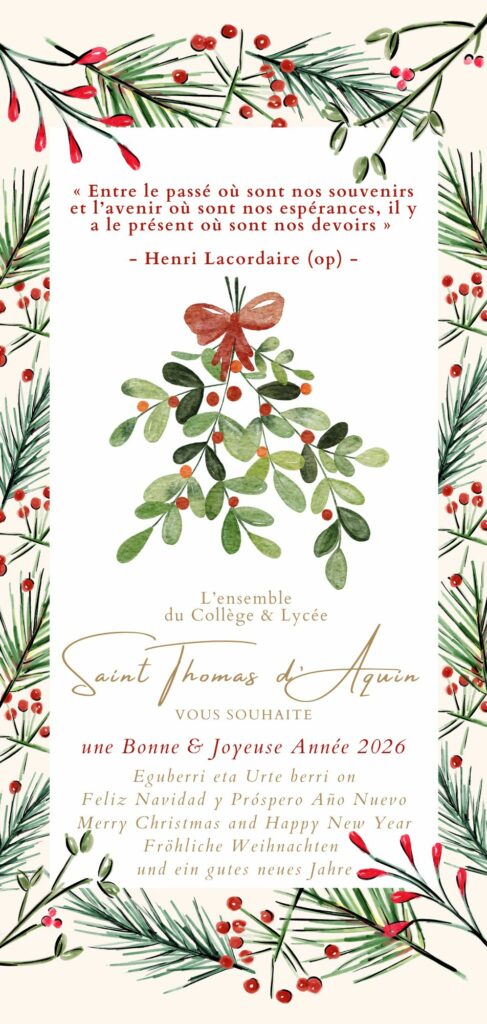 Bonne année 2026 à toute notre communauté ! En ce début d’année, nous adressons nos vœux les plus chaleureux à chacun et chacune d’entre vous : élèves, familles, enseignants, personnel, et tous ceux qui font vivre notre établissement au quotidien.