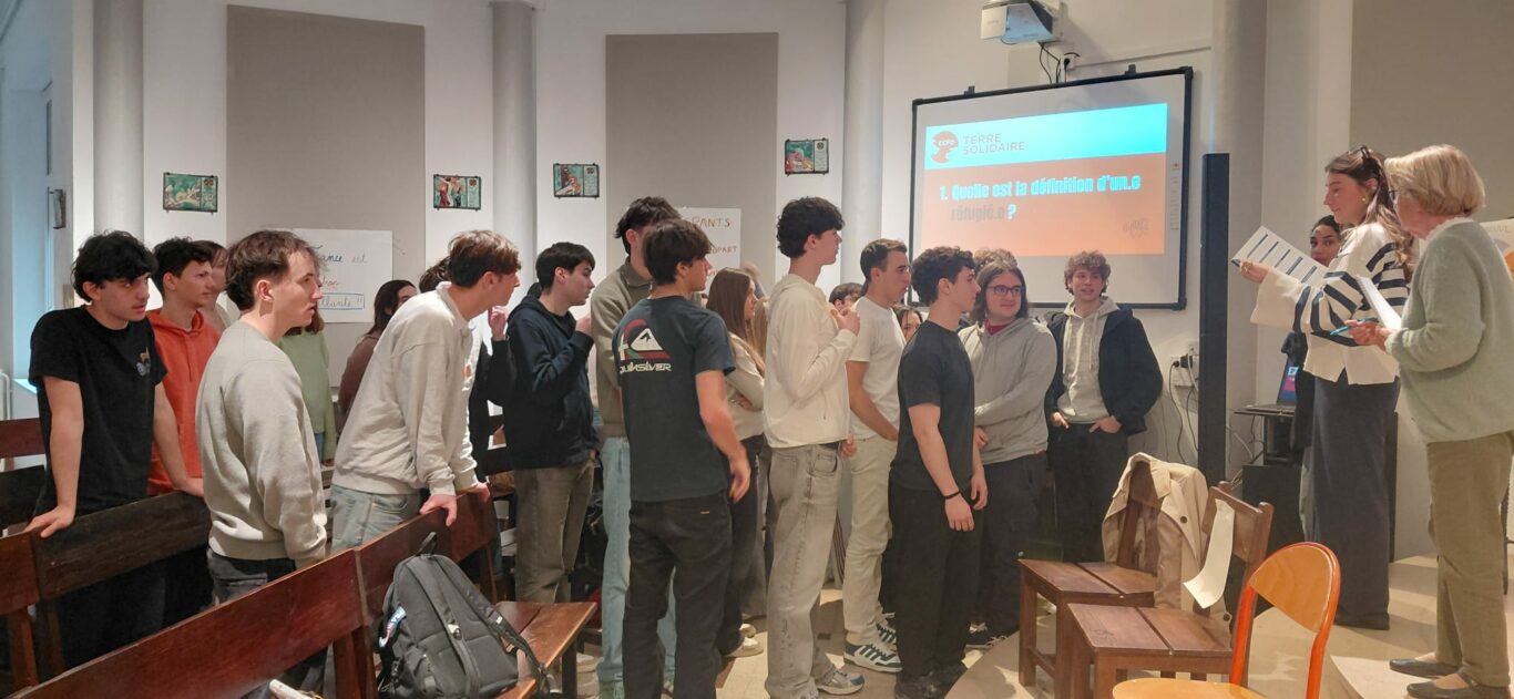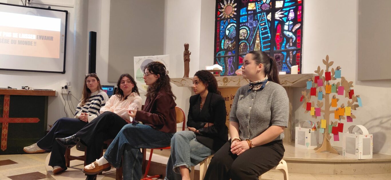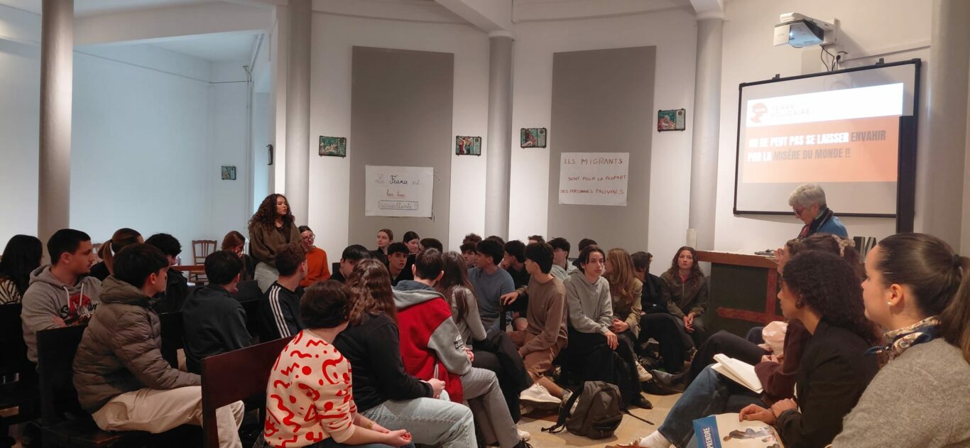 Dans le cadre du projet pastoral et du thème d’année « Appelés à servir la démocratie — pour résoudre ensemble les problèmes de tous », nos élèves de Terminales ont rencontré des bénévoles du CCFD-Terre Solidaire et de jeunes étudiantes engagées au sein de l’association Bestearekin.